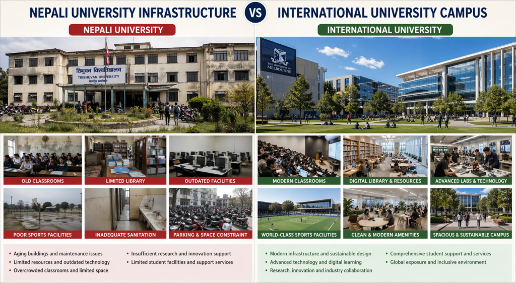 Real consequence: When a Kathmandu student sees that Tribhuvan University’s BSc Computer Science curriculum barely touches machine learning while universities in Australia, Canada, and the US run full AI and data science programmes the choice feels obvious.