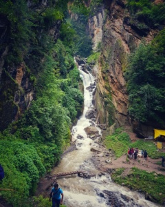 The next morning we bid the oh-so-gorgeous Kheerganga a goodbye and started the trek downhill around 8 am. Our descent through Rudra nag was definitely more scenic. This was a fairly easier one till we got face to face with a landslide, crossing which seemed impossible. But our trek guide Hemu and a few other local men were at their best to help us all get through the landslide.