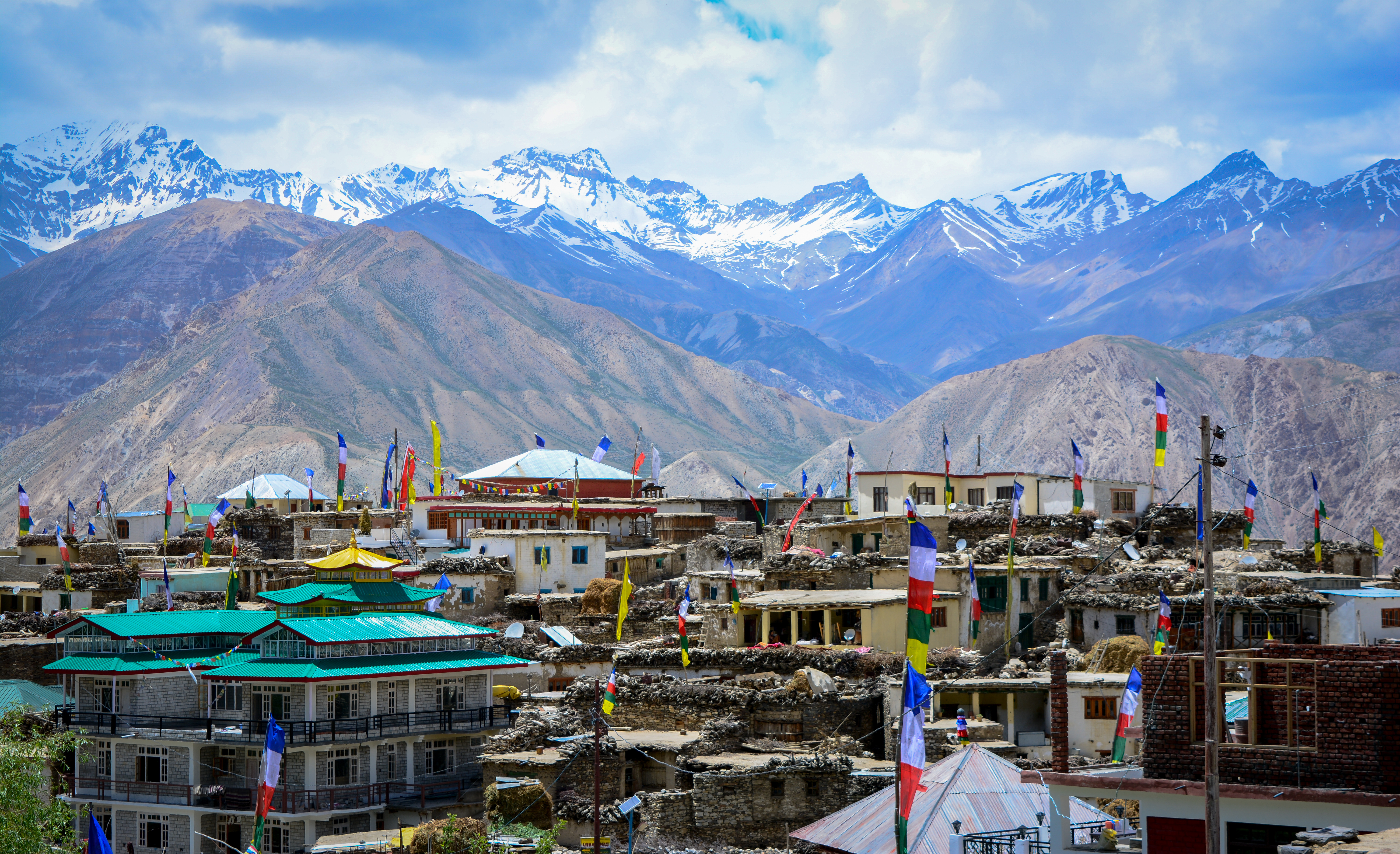 Nako Village is located near the Indo-China Border in Himachal Pradesh, India. It is situated in the Kinnaur Valley Which is among one of the most beautiful valley that you can come across. It is situated at a height of 3625 meters. Well, Nako Village is mostly famous due to the lake that is there in the village. As one may think the lake is named after the village, hence “Nako Lake”. While returning from a visit to the Nako Lake I was so exhausted from walking, that I stopped for a minute or two, and I saw a view of the whole village; it was amazing. This picture has all the colors that an image should comprise of, according to me. So I clicked the image and then I saw that this scenic beauty looks even more beautiful through the camera lens. The clouds, the mountains, the ice, the houses and my favorite are the prayer flags, a perfect combination and that fits into every situation. Well, as you may see in the image, the village was has a very beautiful view and the houses were moderate, in that they were neither too small nor too big, like I saw in some other villages. Overall, the beauty of this village cannot be described in words.