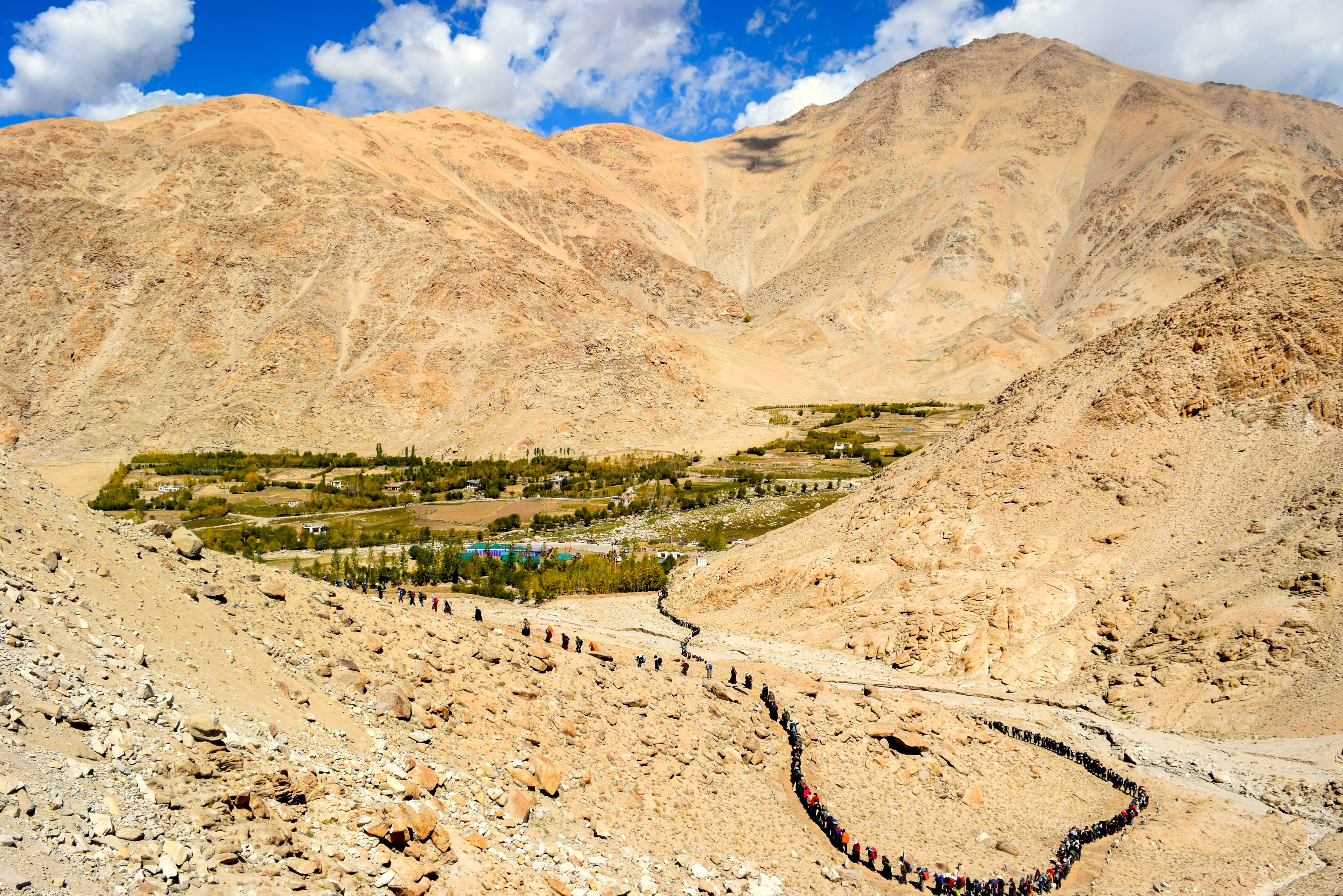 Ladakh’s mystical magic and mystery lies dormant in the fact that it remains a remote cavern of uncharted territory with unfathomable geological mayhem spread across its treacherous terrain perpetually putting life and survival to test. There is a saying about the region, which is as common as it is true, “The land so barren and the passes so high, that only the worst of enemies and the fiercest of friends dare to lay foot upon its soil.” Perhaps the expression renders the participants of the Padyatra in the latter half for each one was present solely due to their devotion and determination.