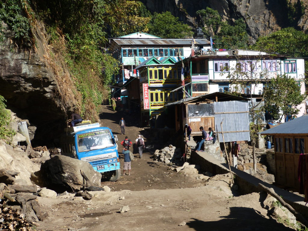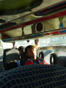 A picture from our guide Krishna, who probably knew about the traffic jam from Kathmandu to Besisahar, and took the chance for a last nap; the end-point of our bus, and the start of the trekking.