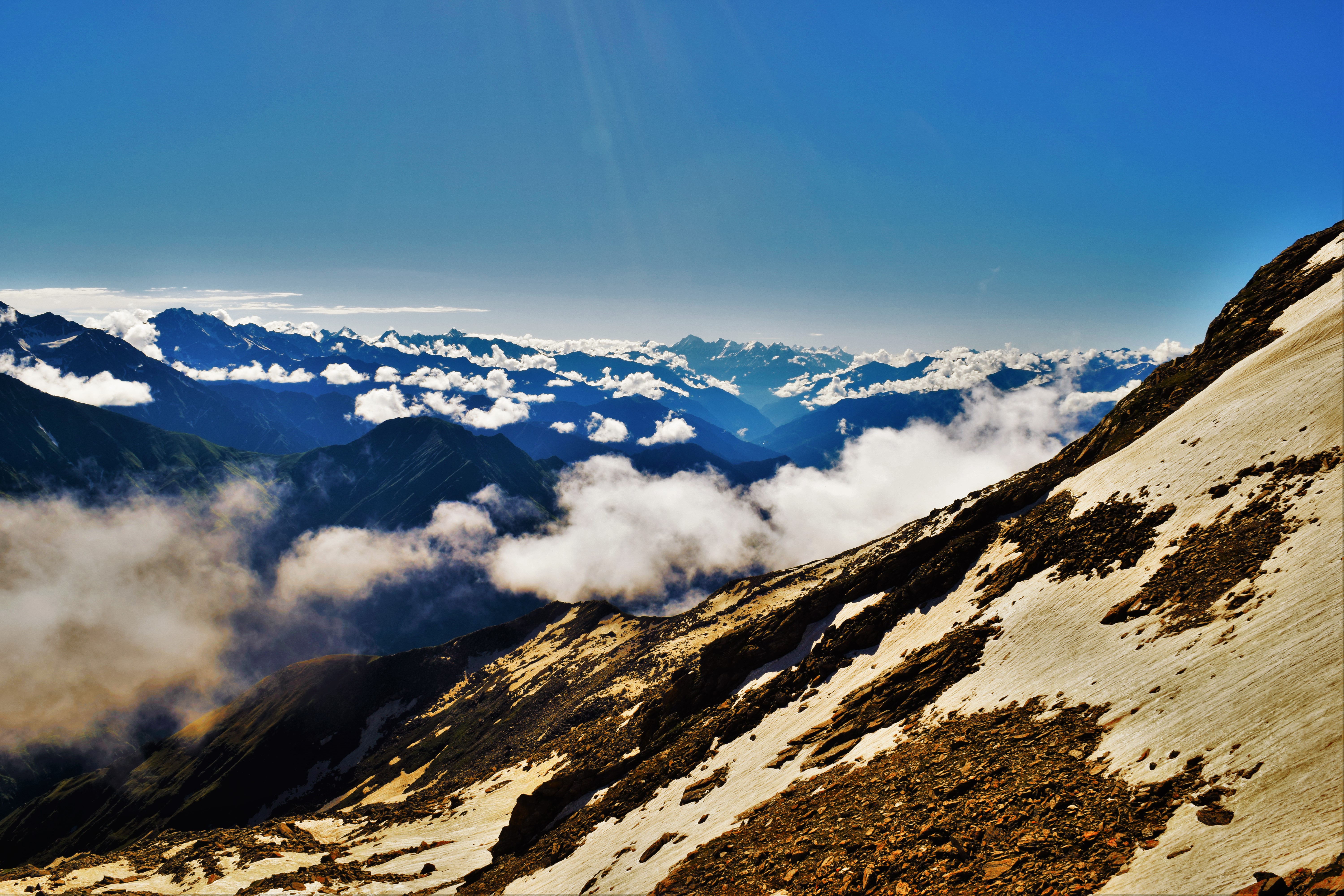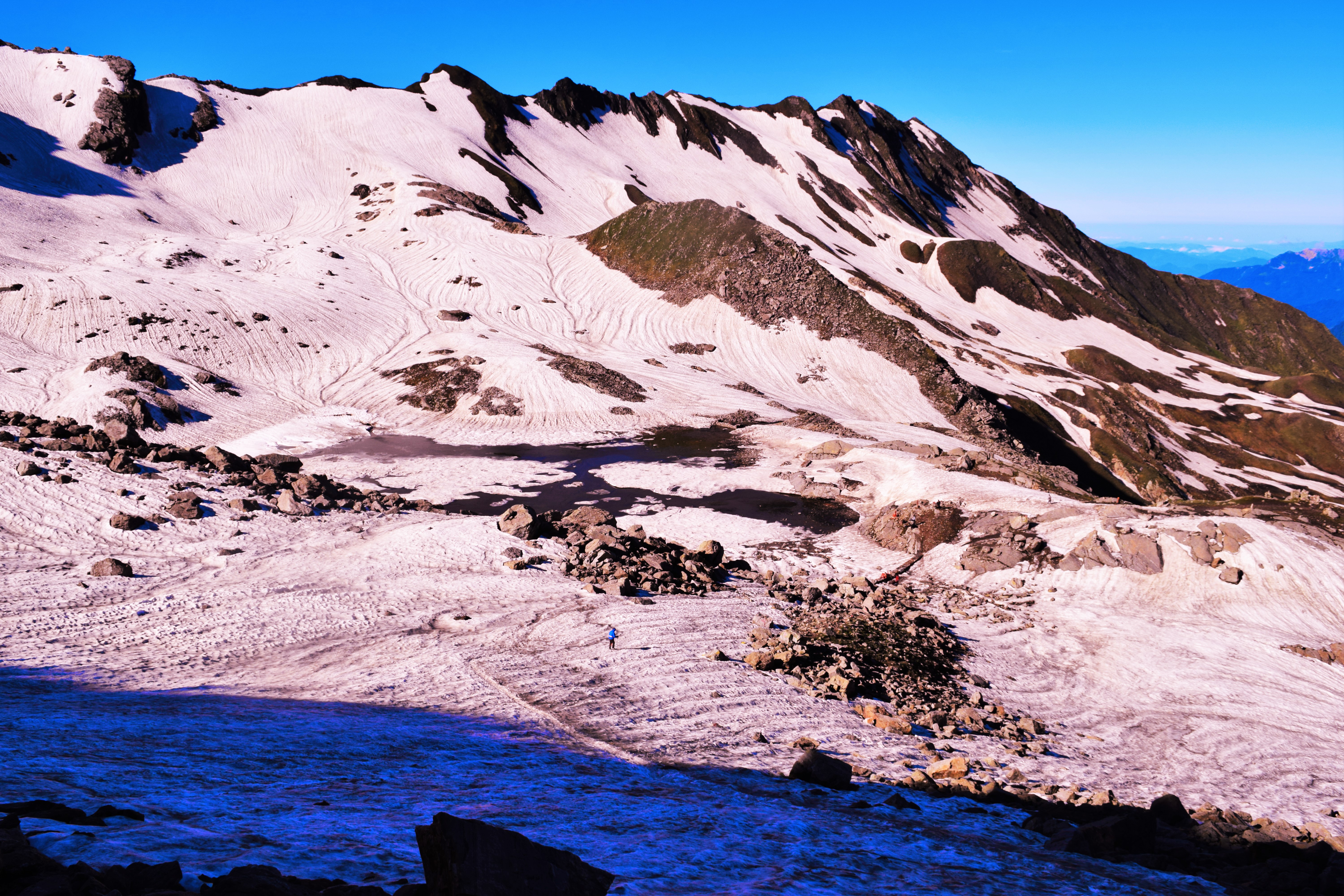 So as we were to start I saw there is a trunk of single tree which we have to cross in order to reach the other side of the river( which is flowing fully heavily, cloud burst) somehow a local pulled me there with a stick and then we start the trek it was 8 km we have to walk (steepest way in the whole trip ) , we walked with the satluj river’s branch glacier and after rest for the day starts the day 2 when the one among us left to down and then we 2 start in the rain, sunkissed, in Jungles and then after whole day we reached bheem dwar in between a lot of photos and walk and view.