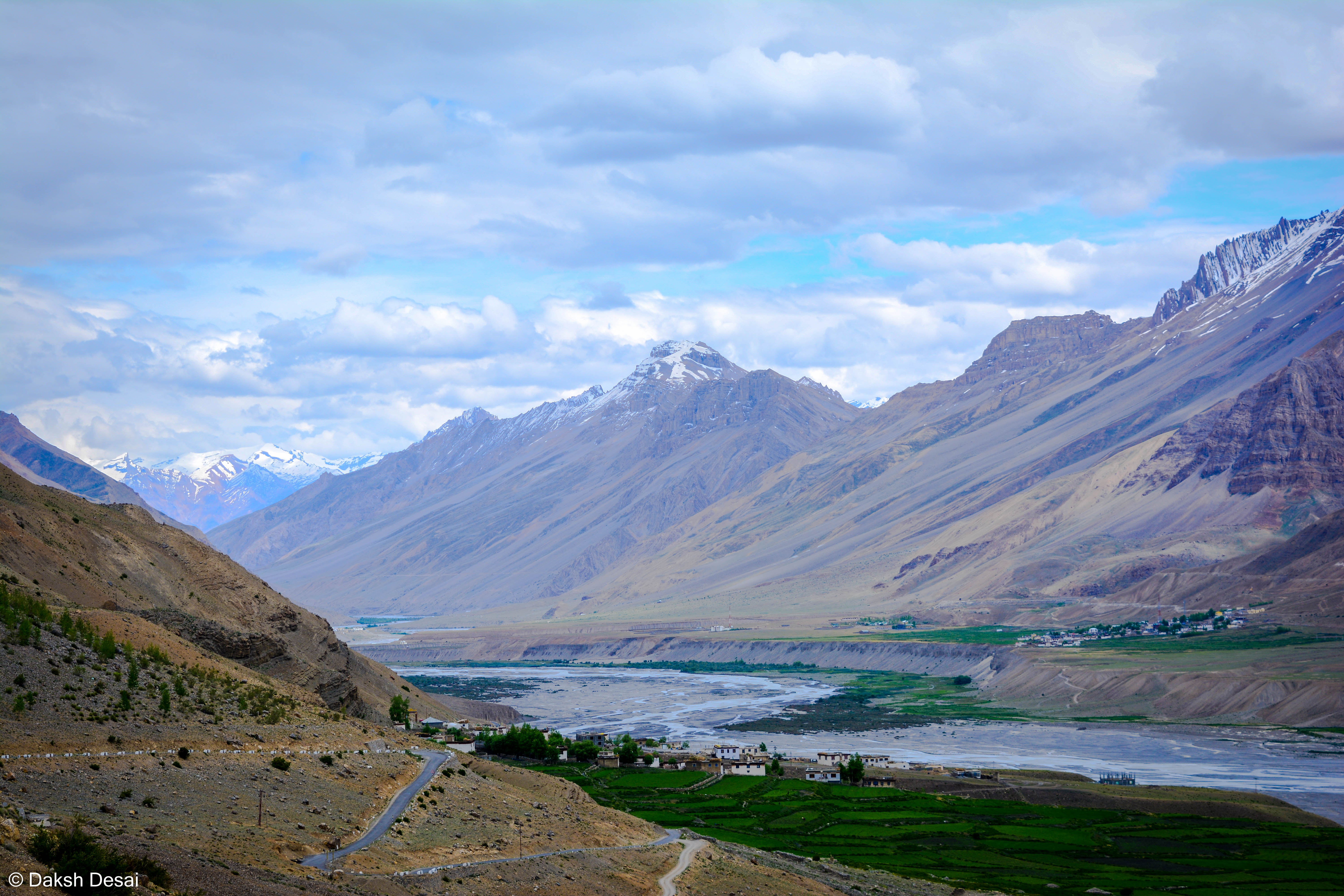 In the morning it was foggy and cold that I didn’t quite see this place as I didn’t get out of the car. However, while I was returning from the “Key Monastery” I asked my driver “Anil Ji” to stop by for 5 minutes and let me click this beauty and that we’ll head to the hotel. The moment I saw the view its image was clicked in my mind and the whole image was framed in my eyes. The mountains, the clouds, the river, the greenery, the roads were all was just mesmerizing. Then I held my DSLR “Nikon D5200” and I clicked the beauty. Well, I am still surprised with the kind of relationship and the vibe the mountains give me. Amazing. I fell there is a very special connection between me and the mountains. I love them.